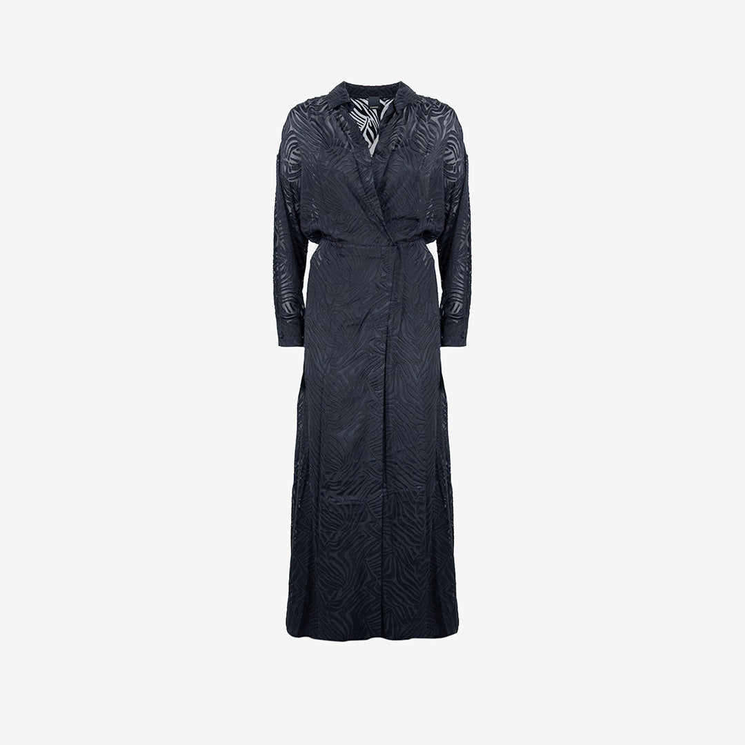 Colletto a revers e maniche lunghe.