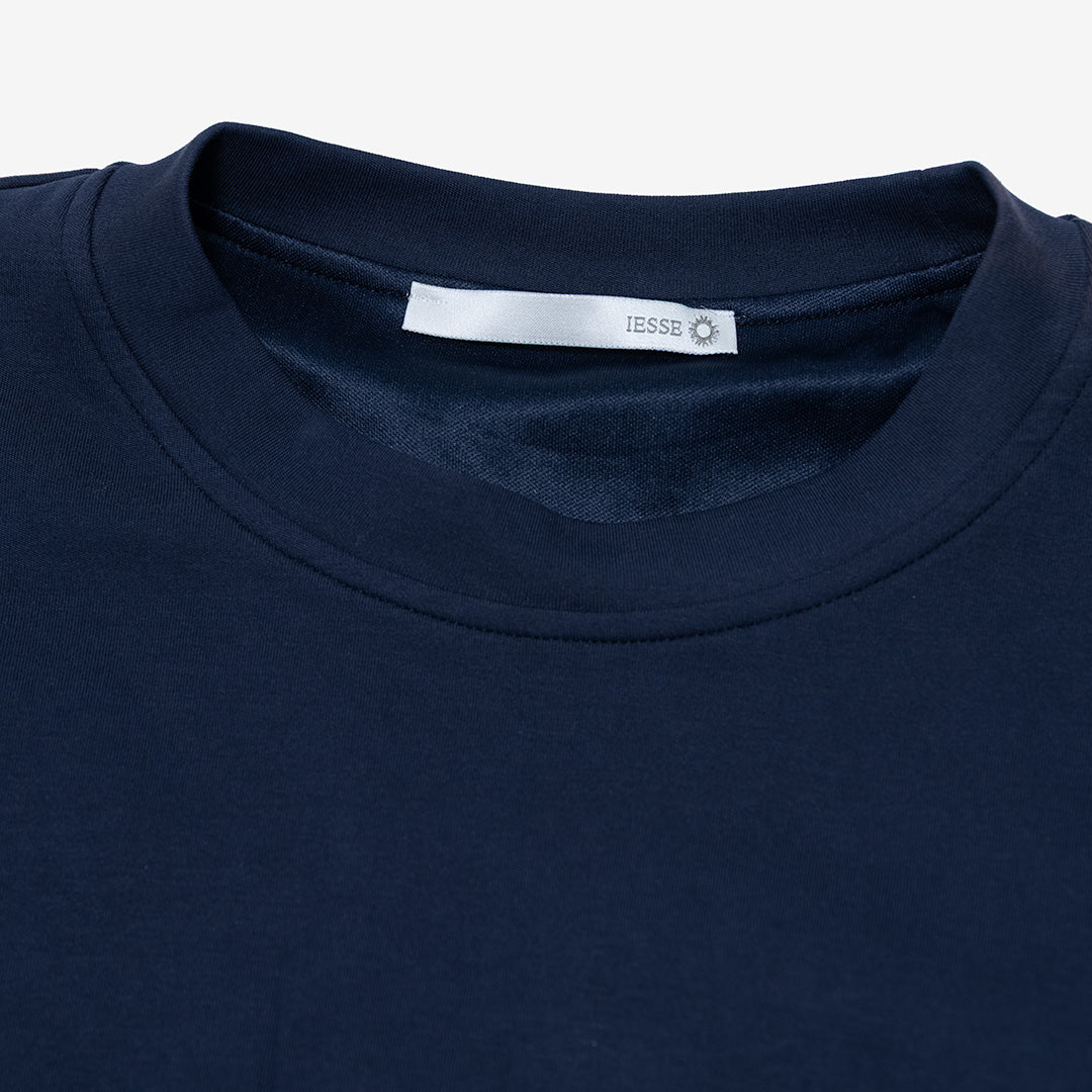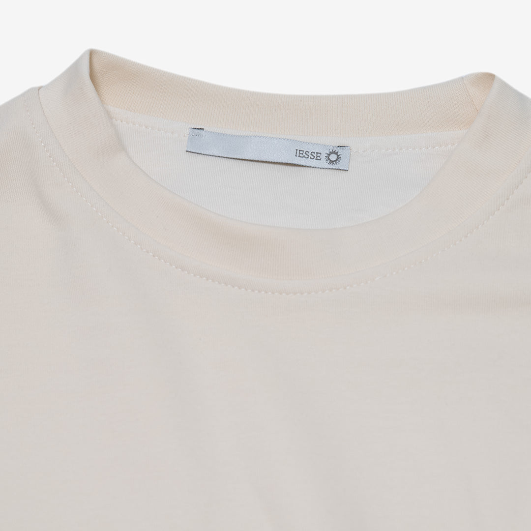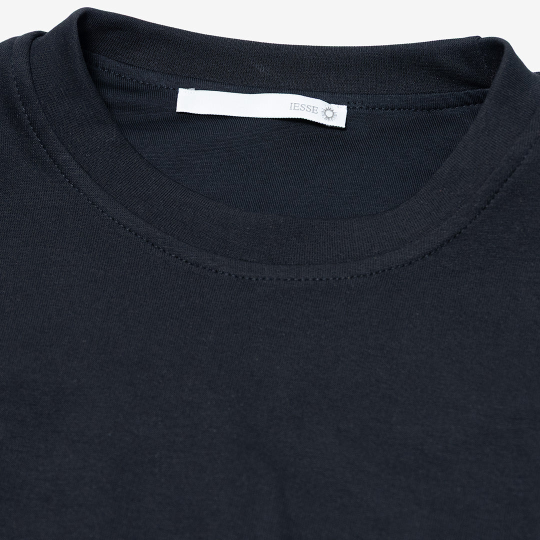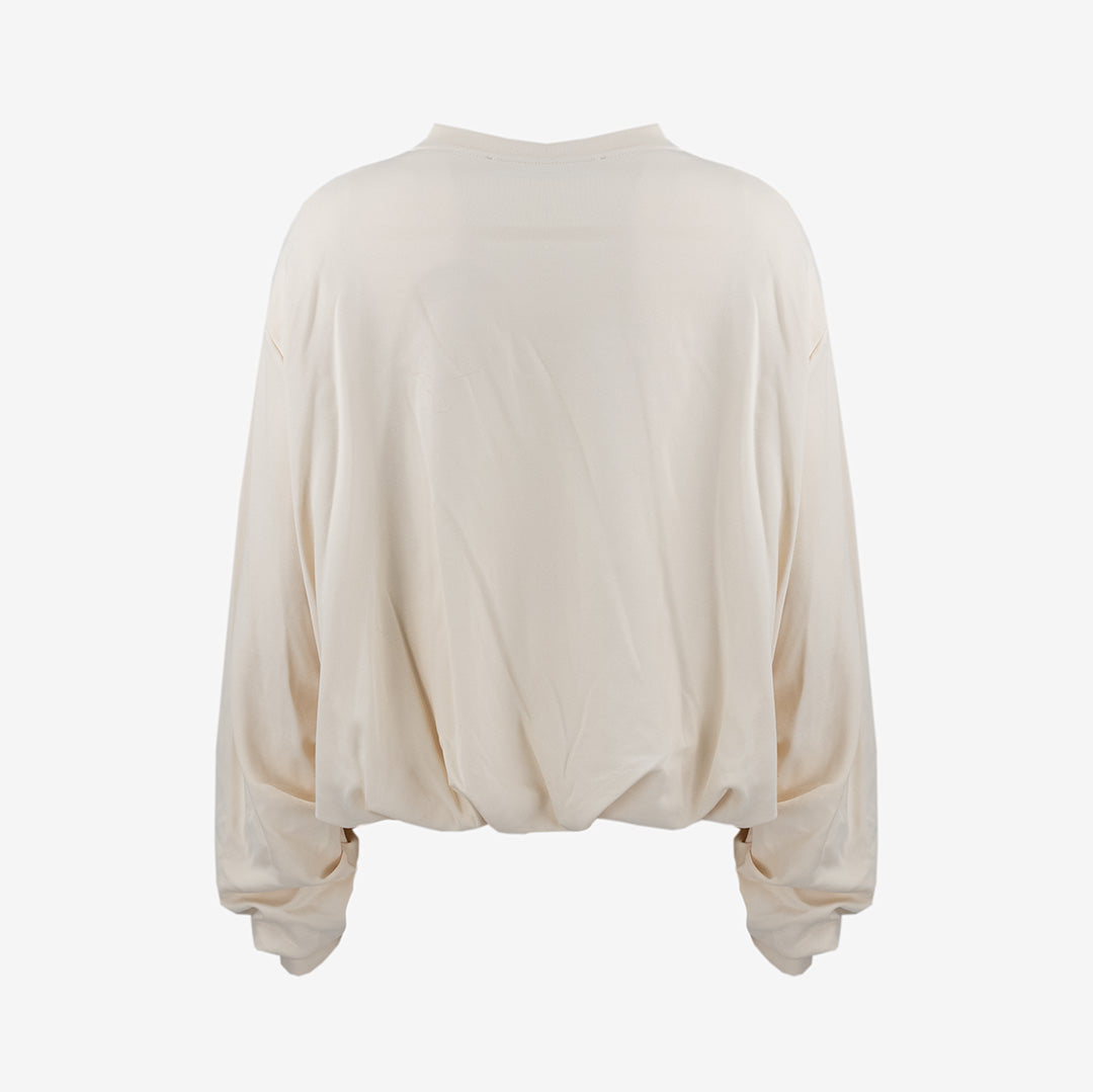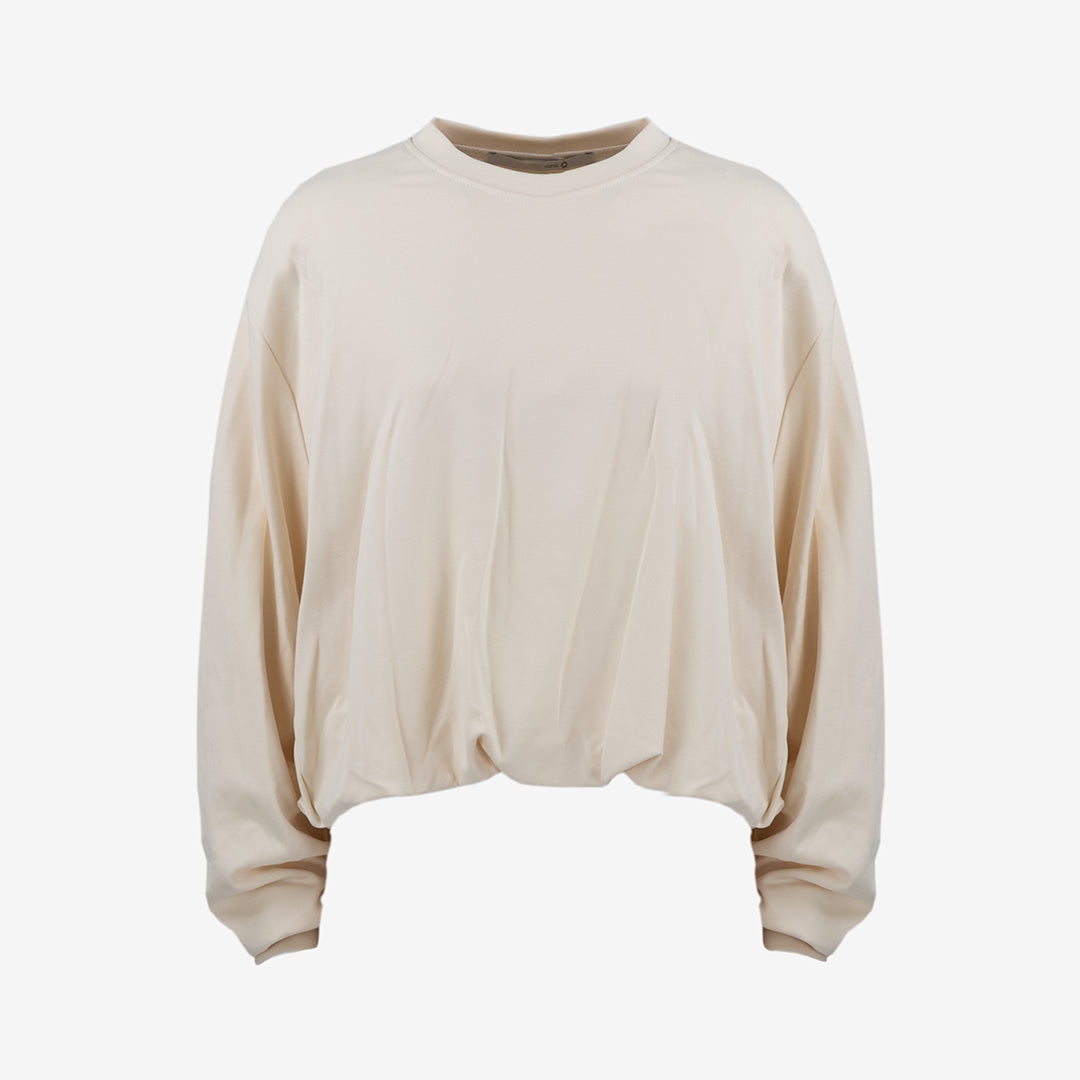 Collo rotondo e maniche lunghe.