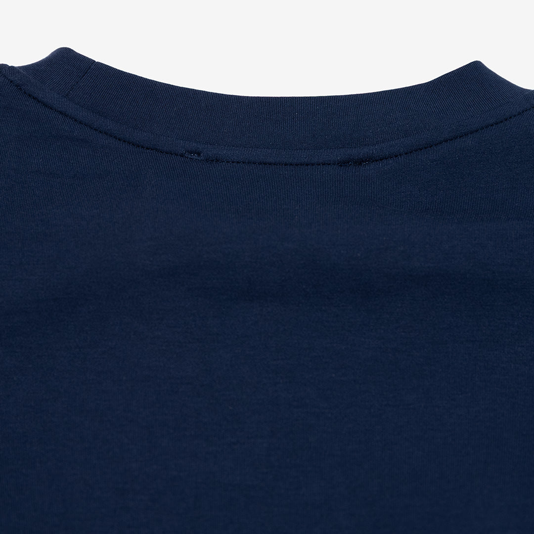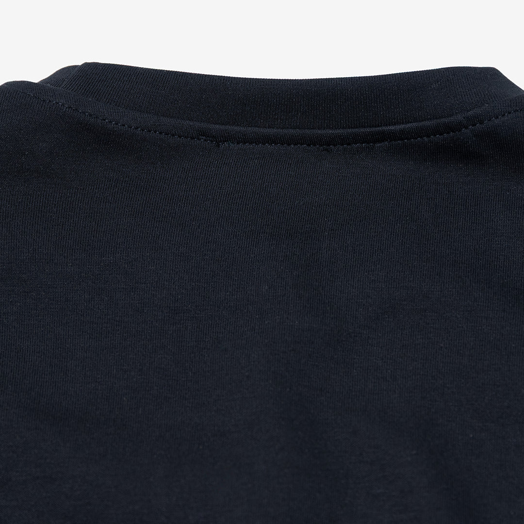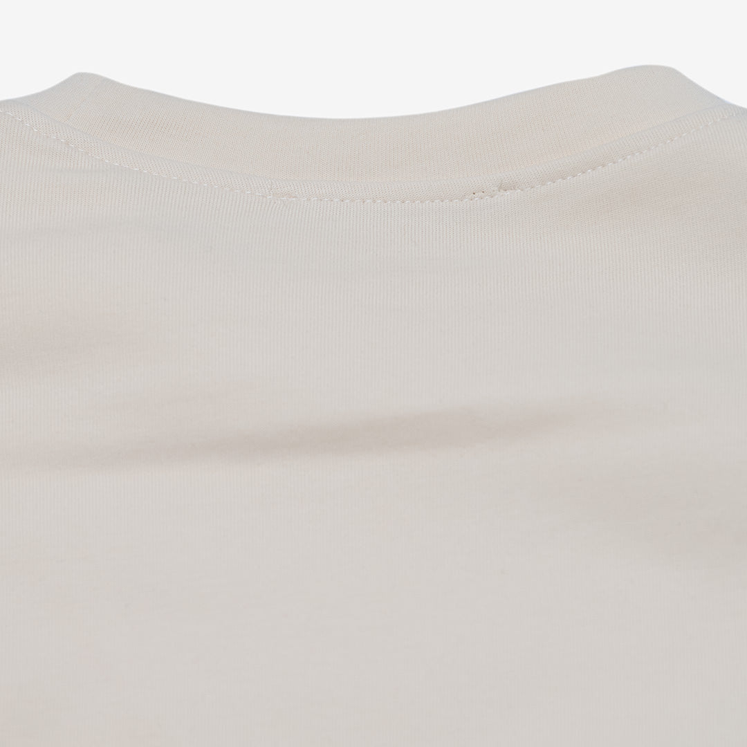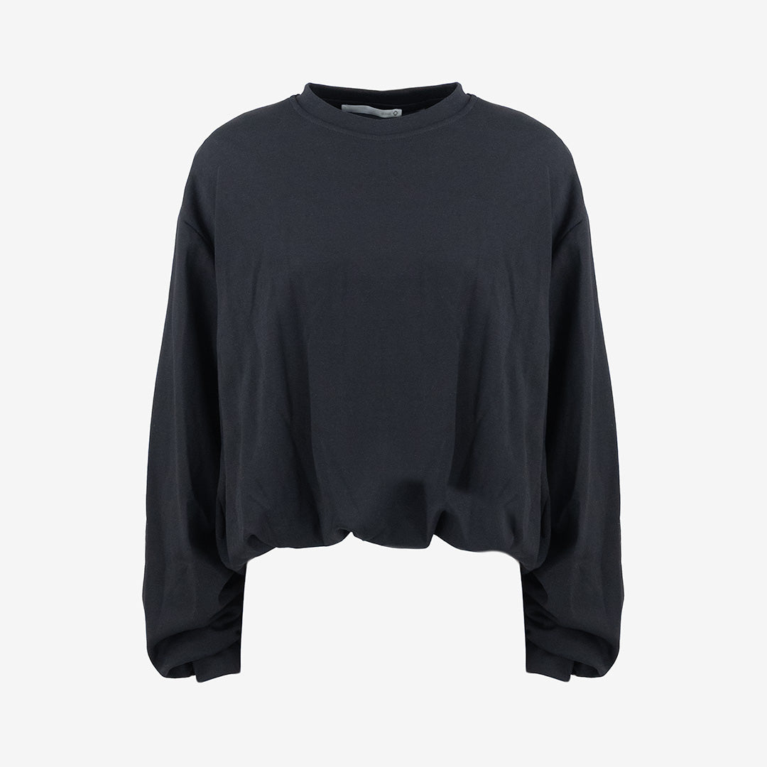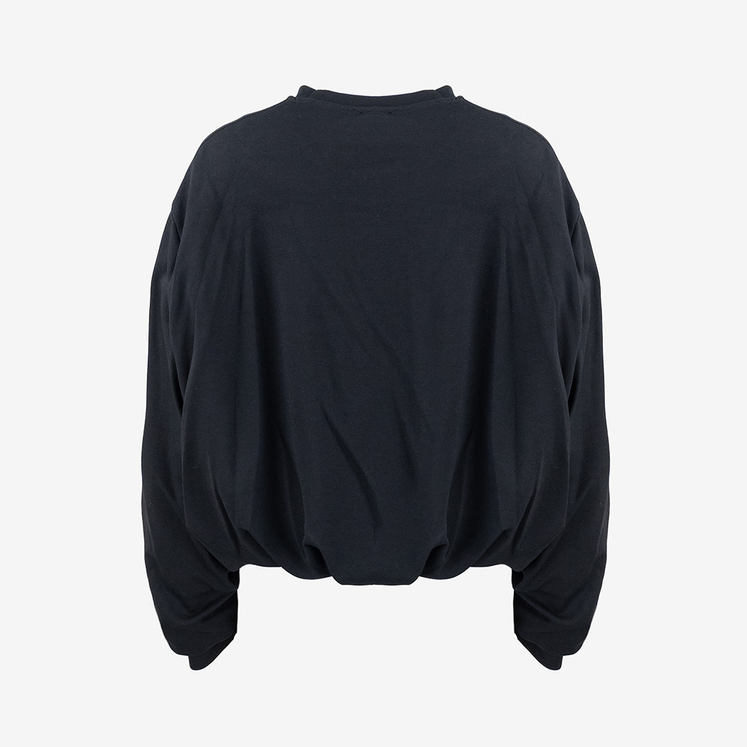 Collo rotondo e maniche lunghe.