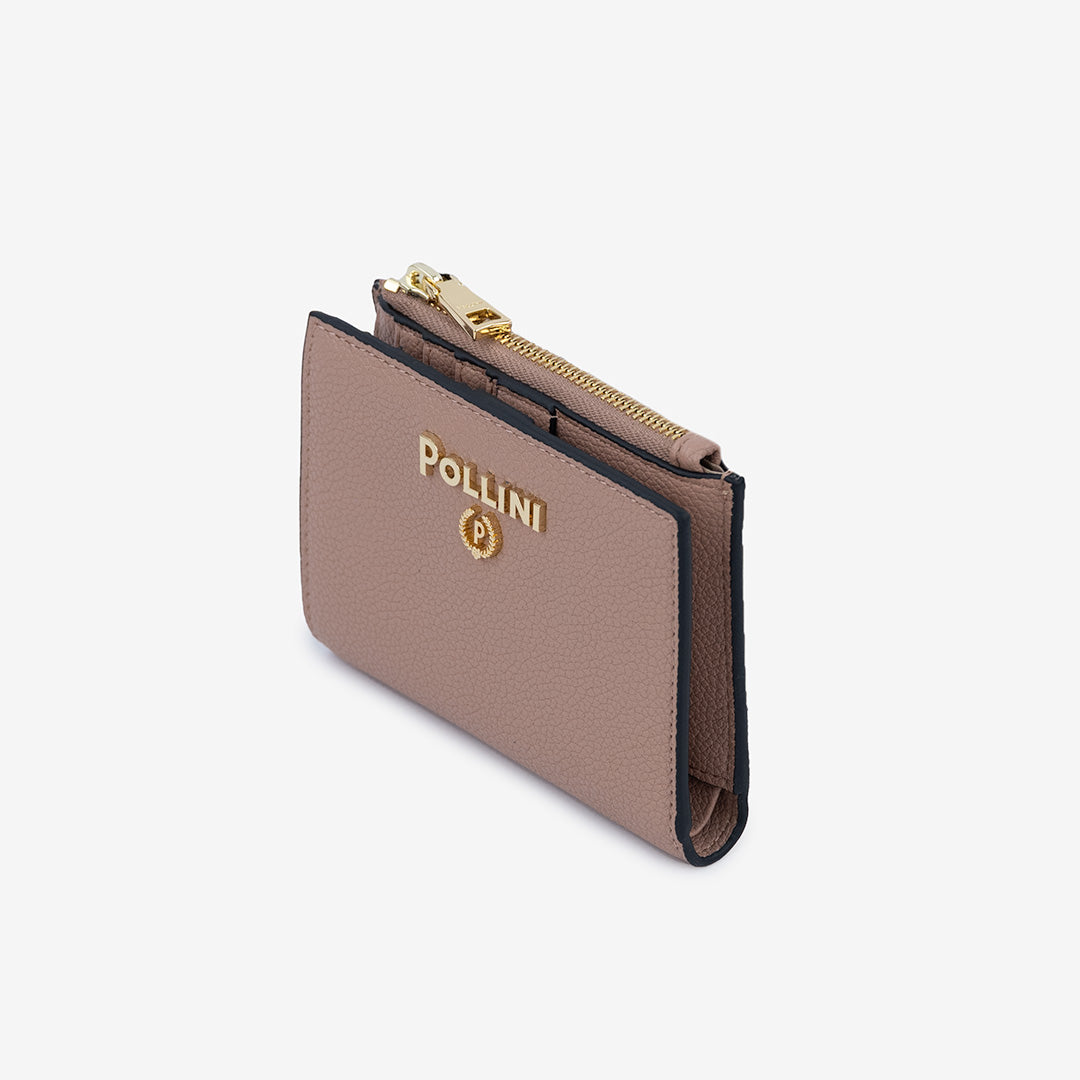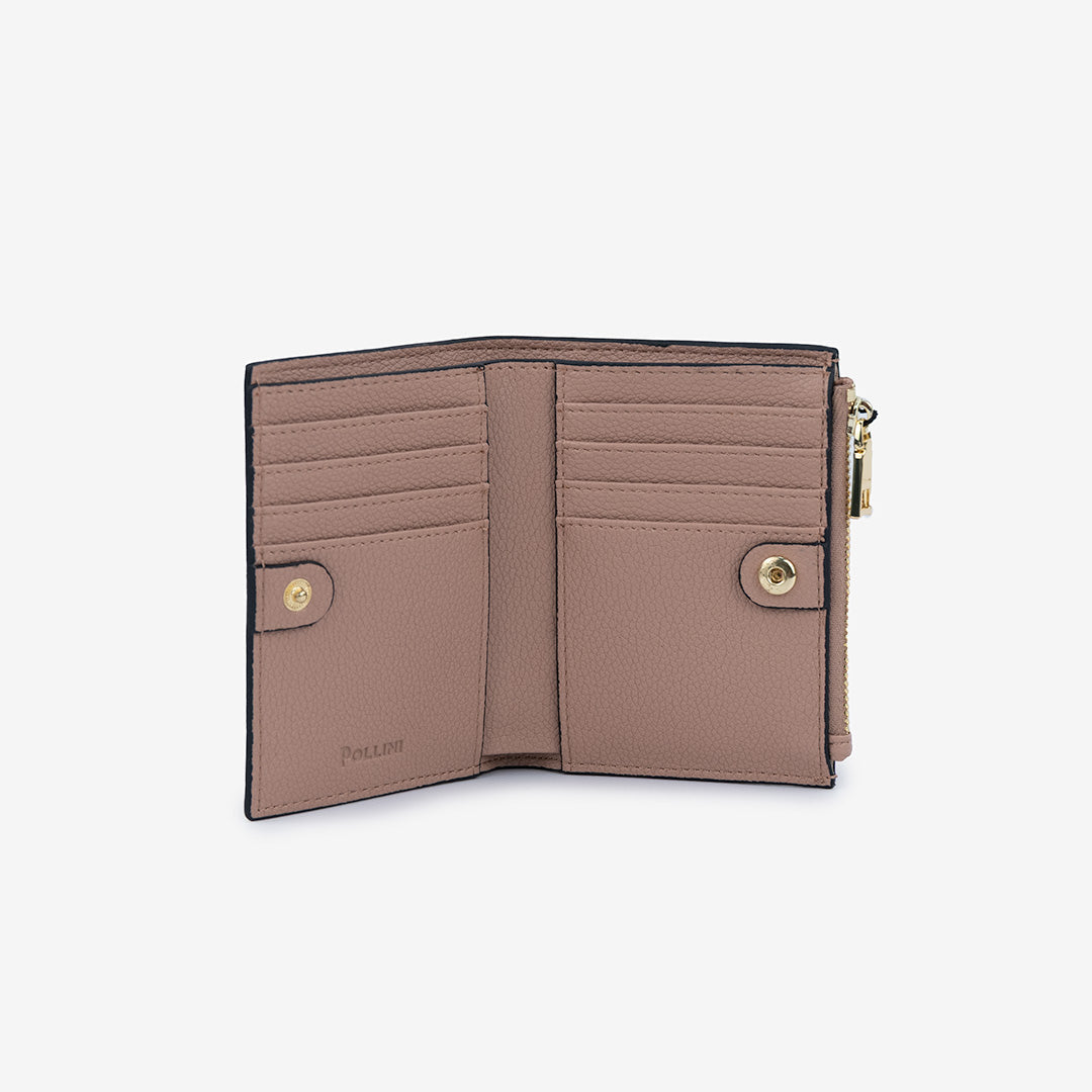 Dotato di scomparti porta carte, porta banconote e porta monete.