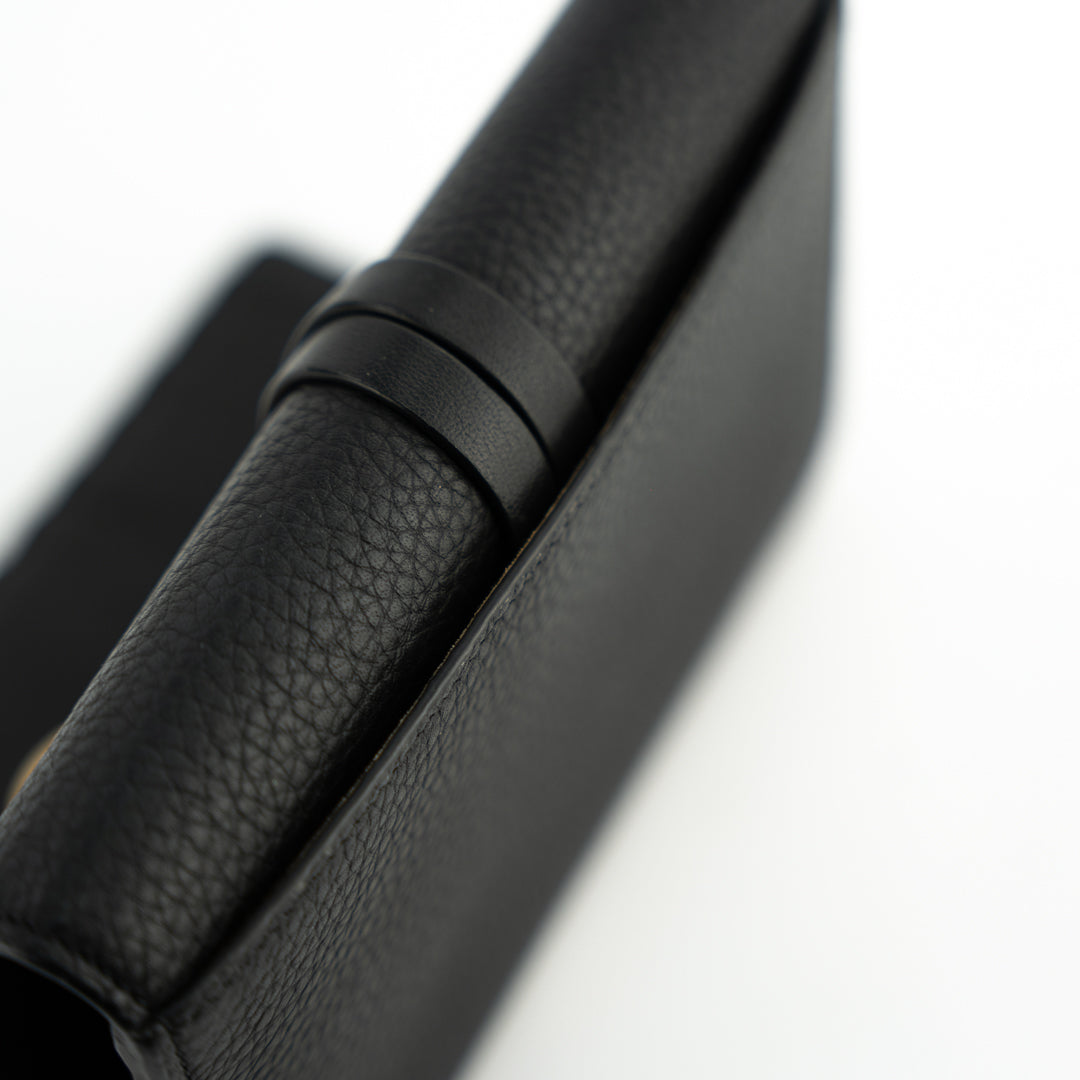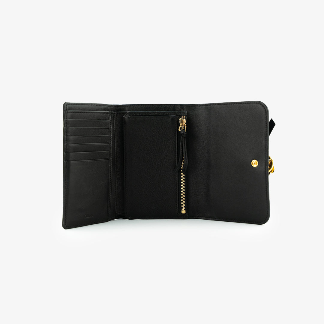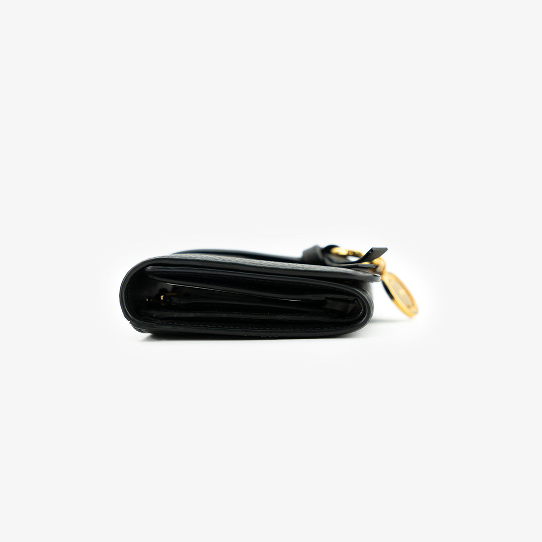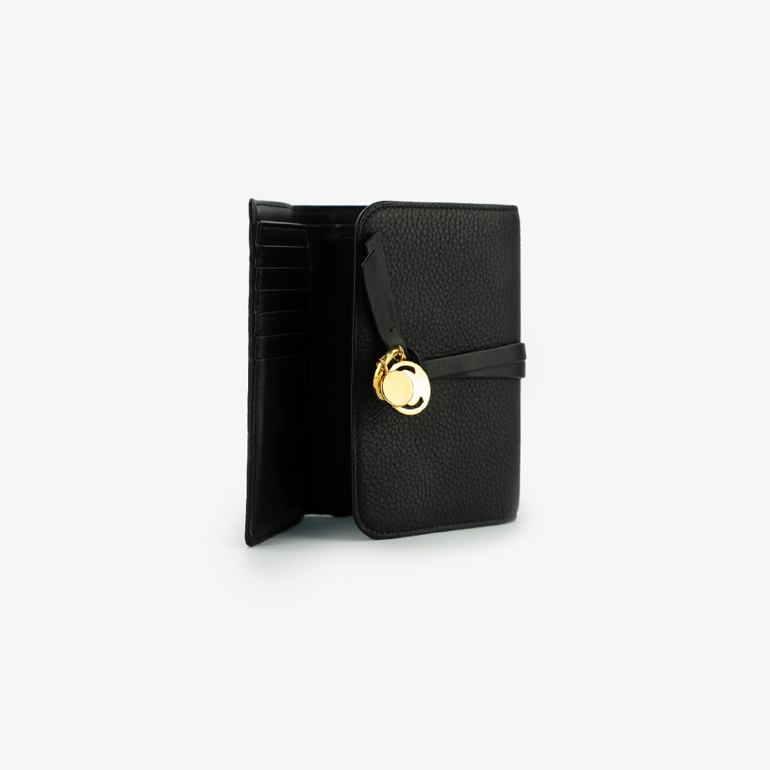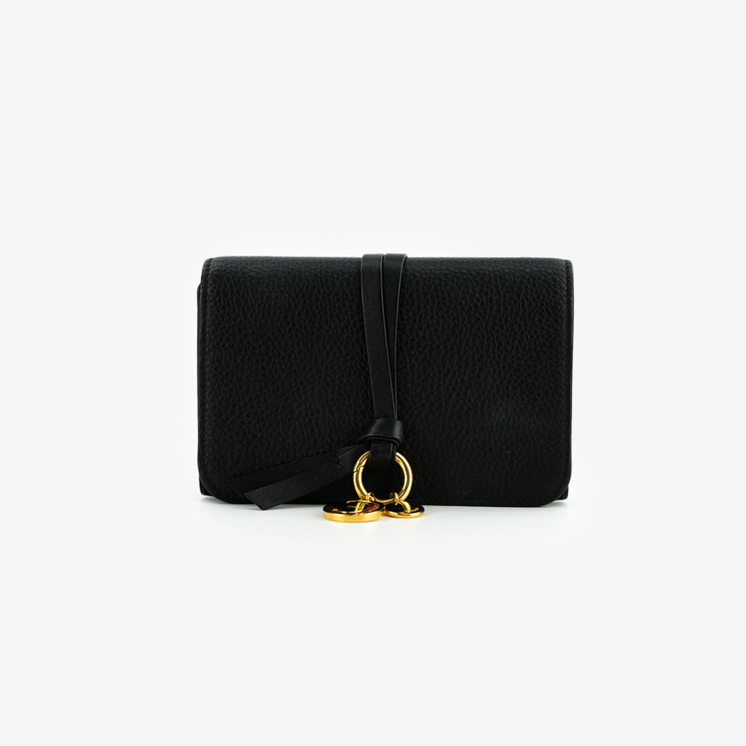 Questo portafoglio può essere personalizzato attaccando i charm con le proprie iniziali all'anello in ottone.