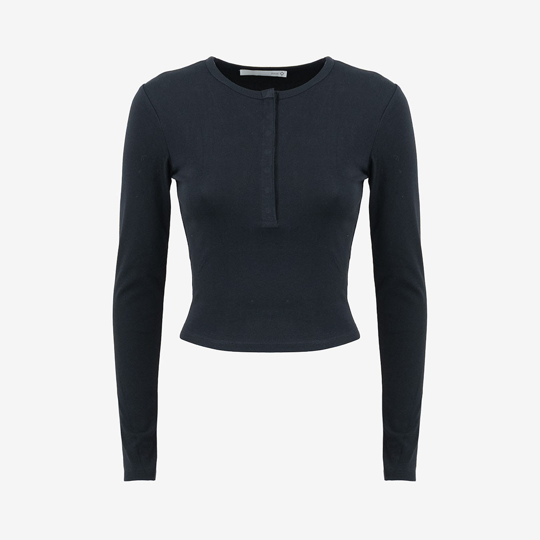 Collo rotondo e maniche lunghe.